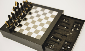 Ajedrez basado en el estilo Art Déco, incorporando formas geométricas, simetría y elegancia.