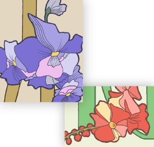 decorados con motivos orgánicos, curvas estilizadas y detalles florales,